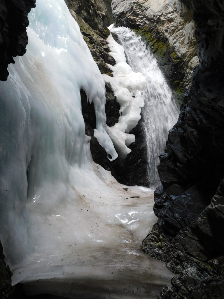 The 30 foot waterfall is split in half and one side was frozen and the other was not…so very cool!