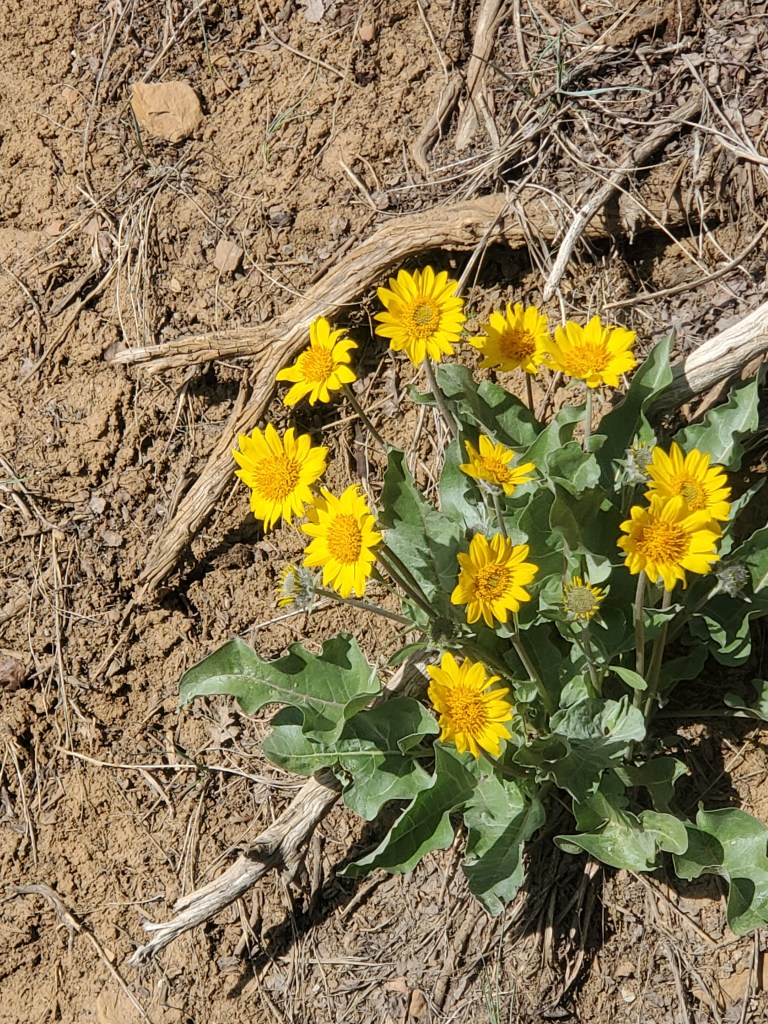 We headed over to Wetherill Mesa. The drive along the top of the mesa was just really cool. Only a little wider than the 2 lanes, it was fun being able to see down on both sides. (we later learned that mesa here is a misnomer and it is really an escarpment.) We walked to the Nordenskiold Site 16 site. About a mile walk through the landscape, we were treated to our first wildflowers of the season: arrow leaf balsam root, Indian paintbrush and one I have never seen which was later identified as tufted Evening primrose.