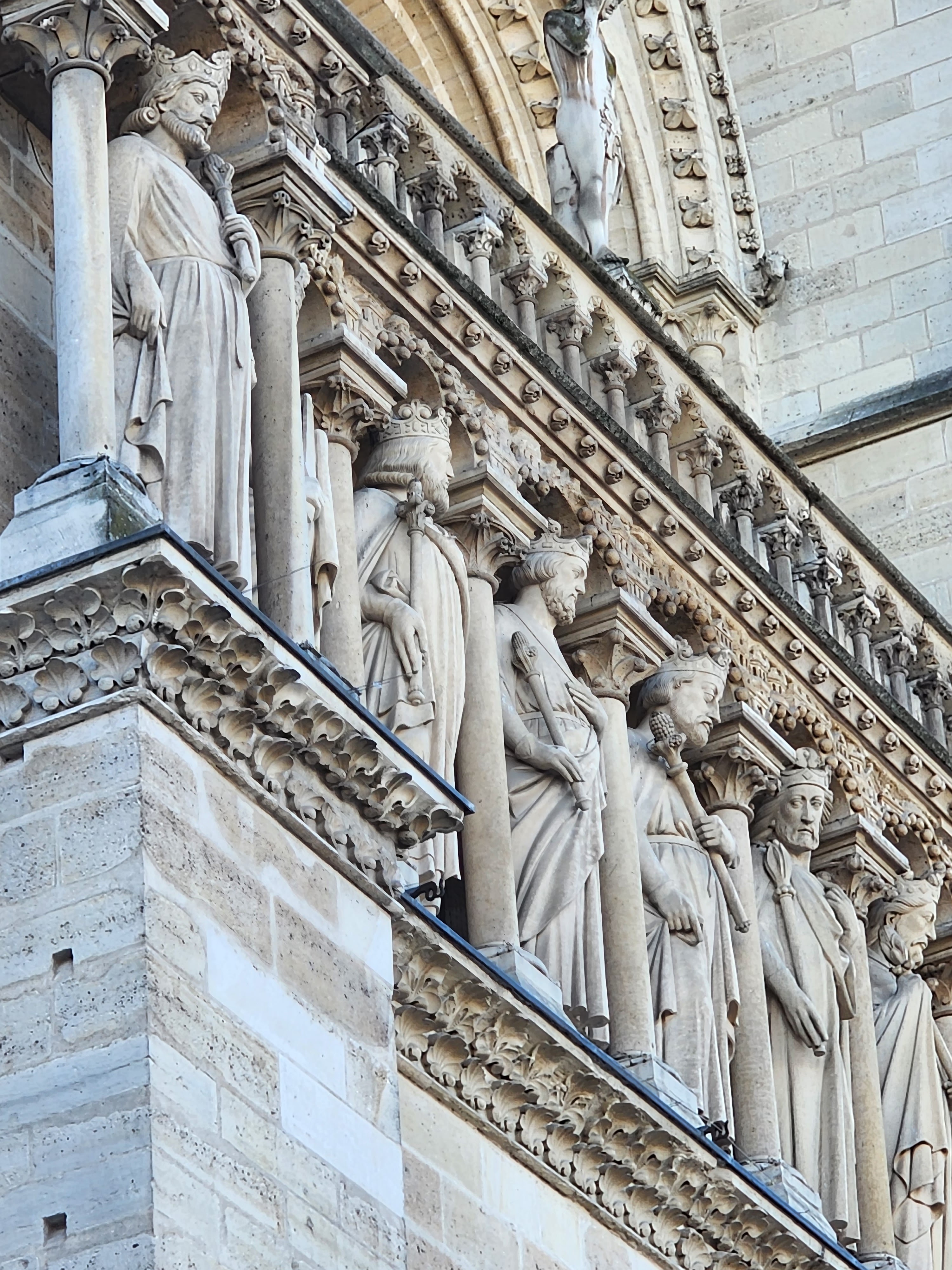 We had breakfast with Robin and Neil and then we headed our separate ways. Robin and Neil took the Hop On Hop Off bus around town and Buzz and I had a walking tour scheduled. Our tour guide, Agustina was wonderful. She has 2 Masters (one in art, one in history) and she is working on her PHD. She knew her stuff. We got up close to Notre Dame. The French government (who is the owner of Notre Dame) called in over 200 experts of art history, architecture, etc. and had them tour the site and make notes on what needed to be done. Agustina was one of the experts called in. The restoration inside is expected to be done by December, 2024. A really interesting fact is that all fire chiefs in Paris must have their PHD in either Art Conservation or History. This is made a little easier since ALL education in France is FREE!!! When Notre Dame was burning, they did not try to douse the fire. The weight of the water would have caused more damage to the building. So they concentrated on keeping the fire contained to one area by soaking the stones of the building next to the burning area. This kept damage to only the one area of the church.
