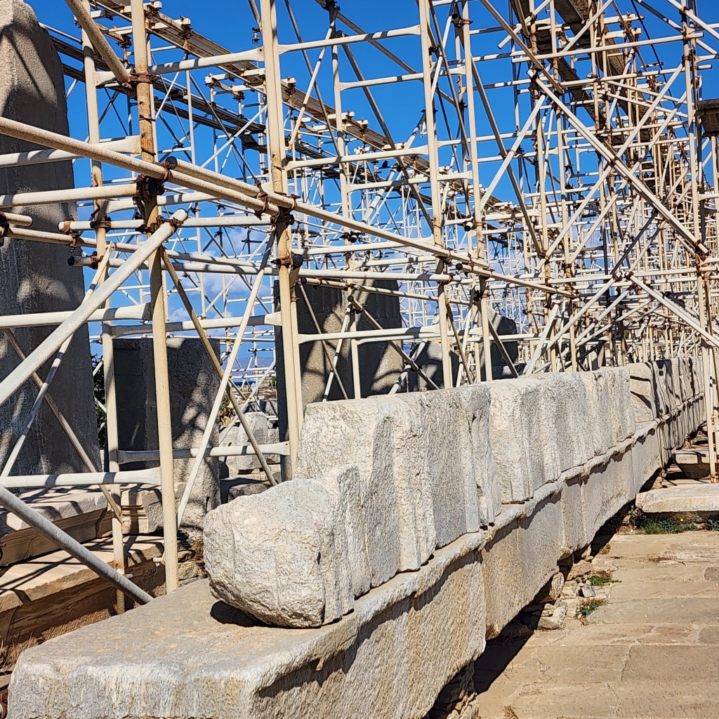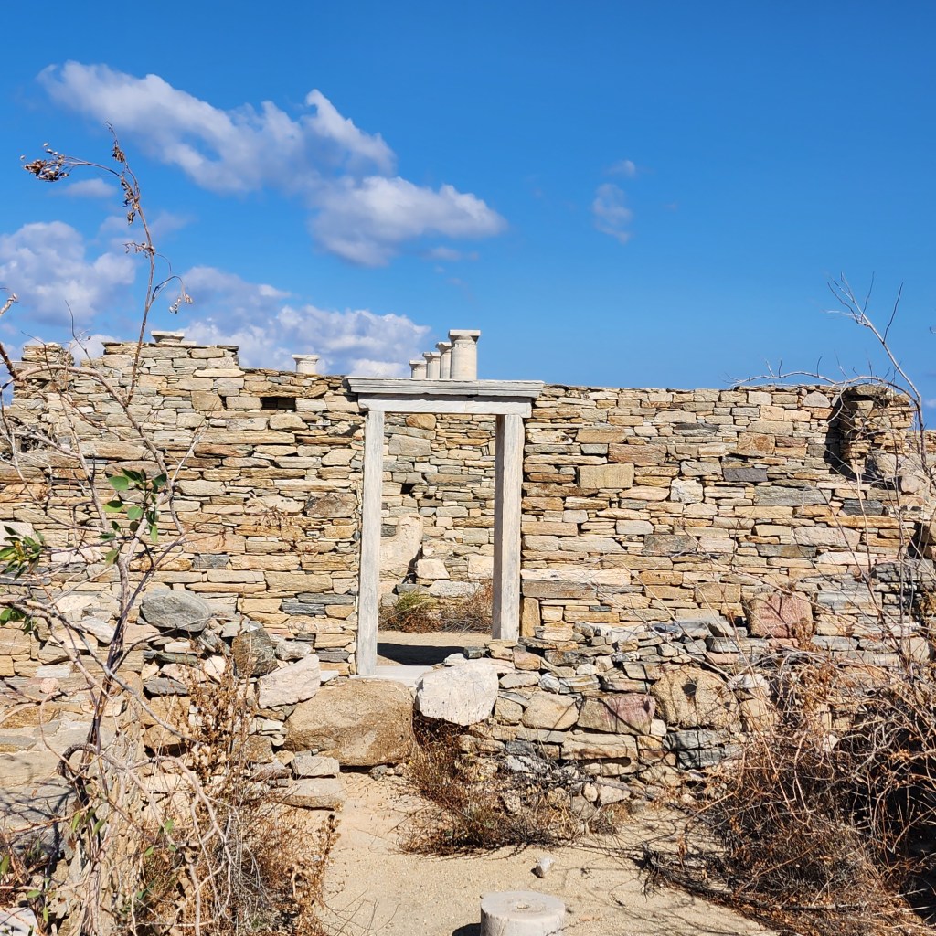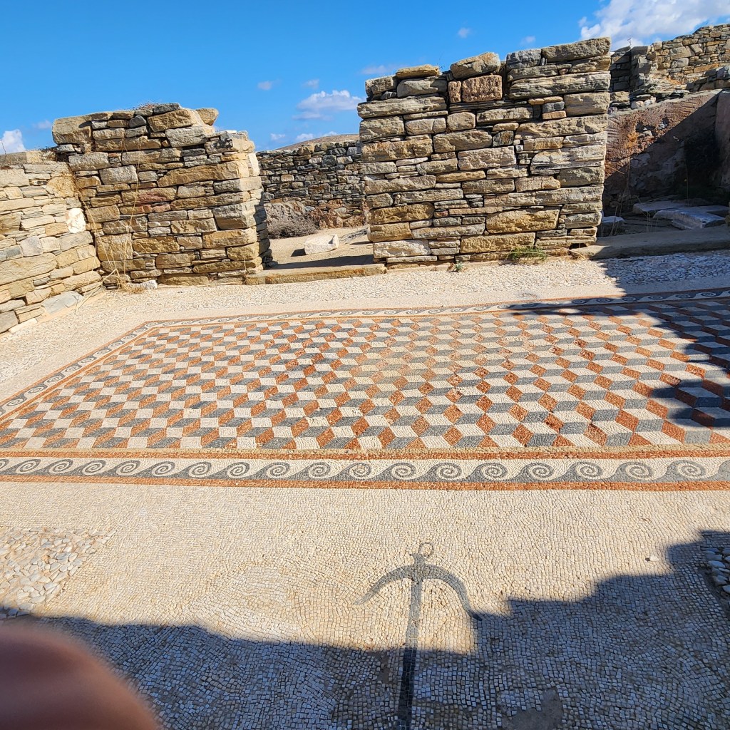We were scheduled to stop in Athens which I was very much looking forward to. But there was some kind of boat strike and the ship could not dock there. So Mykonos was added. I chose to go to Delos for my excursion and so glad I did. What a cool place! Delos is a UNESCO World Heritage site and considered the birthplace of Apollo, god of the sun, and his sister, Artemis, goddess of the moon whose father was Zeus. The island holds traces of civilizations from the 3rd century BC!!!