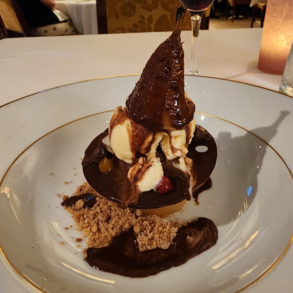 Dinner at the specialty restaurant Le Bistro of lamb chops and lamb shank was very good. Delicious and beautiful dessert.
